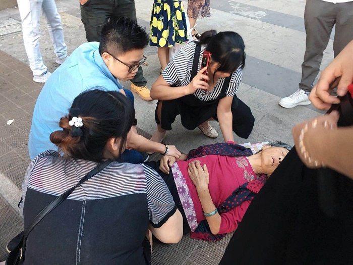 此时区人民医院重症医学科(ICU)的敖丹医生恰巧经过此处,出于职业的敏感性走向人群方向,看见老奶奶的家人一直将其扶坐于地面上,敖医生不假思索,立即上前救治,一边让家里人拨打120,一边询问患者情况以及检查患者病情。敖医生将其头偏向一侧,避免呕吐误吸可能,同时与120出车医生联系,告知详细地址,等待120救援,120到场后协助将其送上救护车,与120医生交接后便悄然离开。