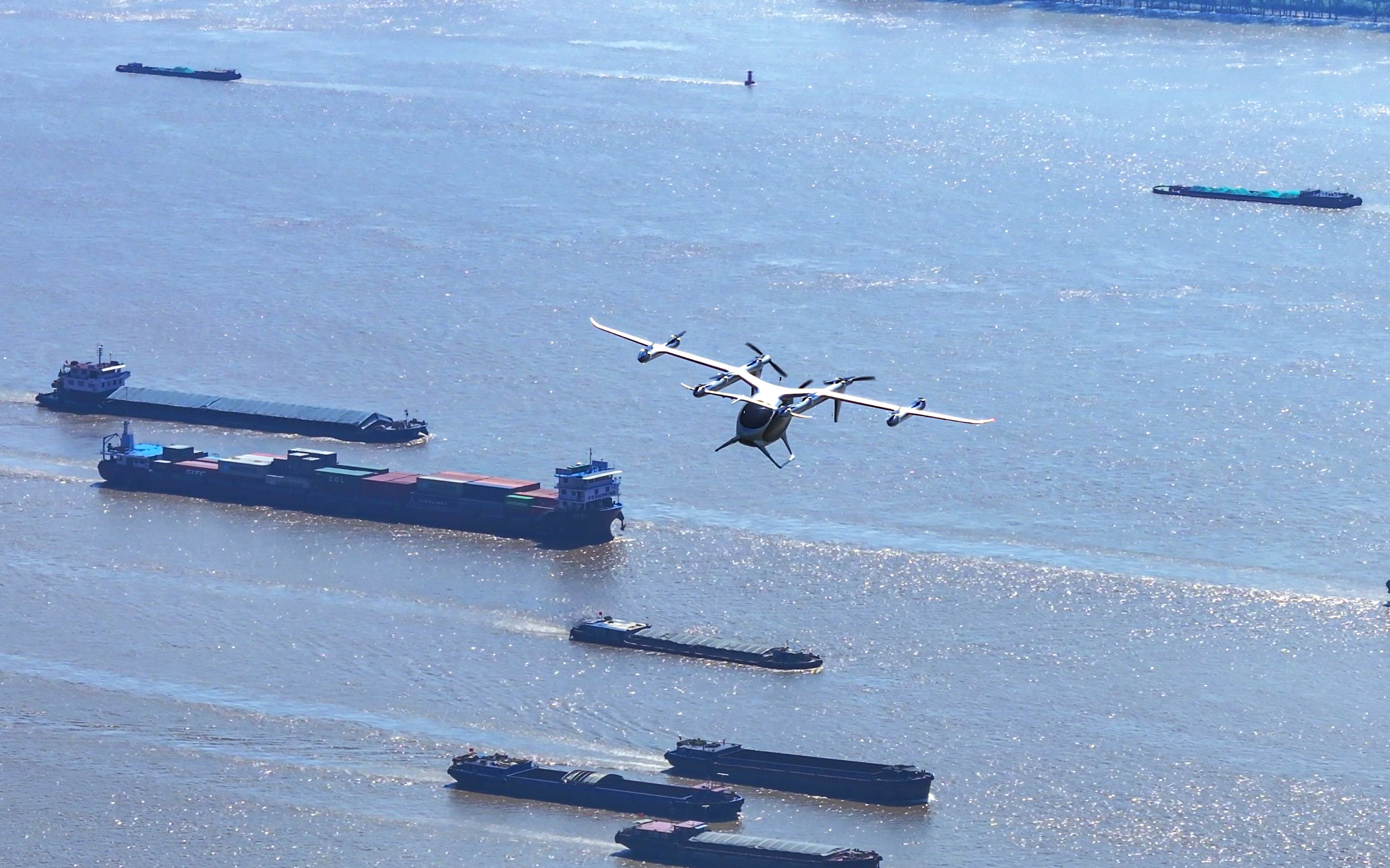 “空中的士”跨长江演示飞行。通讯员 陆浩 南京日报/紫金山新闻记者 孙中元 摄