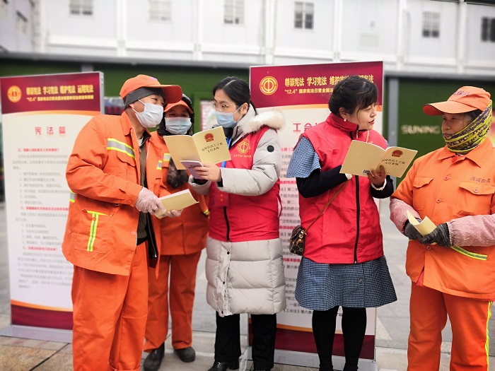 开展“宪法日”宣传活动是“七五”普法工作完美收官的一项重要举措,更是“七五”普法成效的全面展示。省、市、区三级工会组织法律援助律师为现场职工群众宣扬宪法精神、普及法律知识,并对职工群众关心的法律问题提供了咨询服务。现场还通过摆放宪法法律知识展板,悬挂宪法宣传条幅,发放普法宣传资料,向群众赠送宪法读本、工会法、法律知识有奖答题等丰富的活动形式,引导市民学法、知法、守法,弘扬法治精神,让宪法真正走进企业,走进社区,使宪法法律真正融入日常生活,走入人民群众日常生活中。让法治精神在企业和职工心中绽放,构建更加和谐稳定的法治社会。