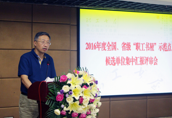 为深入推动职工文化建设,根据《关于申报2016年全国、省、市三级工会“职工书屋”示范点以及市优秀职工阅读组织的通知》(宁工发〔2016〕56号)文件精神,8月10日下午,市总工会在天丰大酒店组织全国、省级职工书屋申报单位集中汇报评审会。会上,经过初审入围的6家全国工会“职工书屋”示范点的候选单位和18家江苏省工会“职工书屋”示范点的候选单位,用5分钟时长的PPT,突出介绍各单位书屋概况以及工作特色、亮点和成效等。为保证评审公平公正,今年评审首次采取评审制,以主评审和各单位评审结合的方式进行,主评审和各参评单位评审权重各占50%;评审采取百分制,起评分80,最高分不得超过98,否则为废票;主评审和参评单位评审计分时均去掉一个最高分和一个最低分,所得均分再按所占权重相加计算后,为候选单位最后得分,根据本次评审的得分高低,结合实地考察情况,最后确定入选名单。此次集中汇报交流活动既是工作汇报,也是工作展示和经验交流,活动受到省市总工会领导高度重视和大力支持,省总工会副主席马永青、省总工会宣教部部长朱和顺以及市总工会党组书记、常务副主席孙强以及市总工会副主席闻庆武等领导应邀担任主评审。各单位不但认真做好工作汇报,并派出评审代表,认真参与了评审。