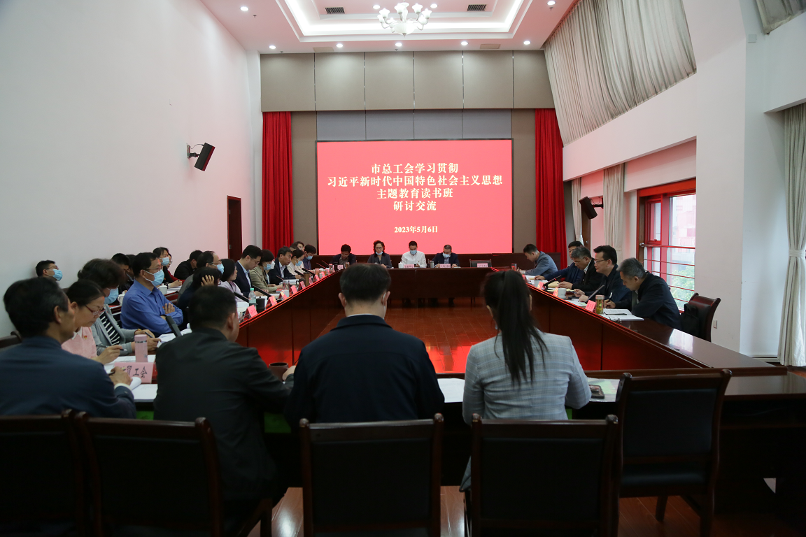 为贯彻落实中央和省、市委部署安排,按照市总工会主题教育领导小组办公室的学习计划,5月4日至5月6日(第一阶段)、5月9日至5月12日(第二阶段),市总工会举办了为期一周的主题教育专题读书班。本次读书班精选学习篇目,理论学习坚持读原著学原文悟原理,按照市委书记韩立明防止“浅表化”要求,切实做到整体把握、融会贯通。全会党员干部在全面、系统、深入研学党的二十大报告和中国共产党章程、《习近平著作选读》、《习近平新时代中国特色社会主义思想专题摘编》等必读书目的基础上,还重点学习了习近平、蔡奇同志在学习贯彻习近平新时代中国特色社会主义思想主题教育工作会议上的讲话,习近平总书记在中央政治局集体学习和在广东考察时的重要讲话,习近平总书记关于工人阶级和工会工作的重要论述,习近平总书记对江苏工作指示批示精神等内容。
