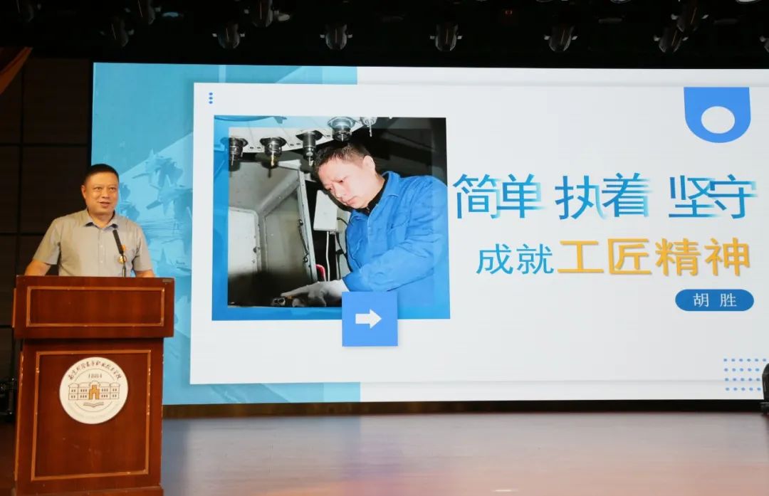 从一名职业高中毕业生成长为全国技术能手,再到一代大国工匠,中国电子科技集团公司第十四研究所数控车高级技师胡胜,在车床上诠释精益求精、追求极致的工匠精神。“我家人做了二三十年的绿豆糕,口感不错,可我有次品尝职业学校学生做的绿豆糕,发现竟比我家人做的还要好吃。究其原因,我想就是因为学生在做绿豆糕的过程中会经常进行思考总结,不断改进制作工艺。”活动现场,胡胜从一块绿豆糕的故事说起,结合自己的人生经历和成长感悟,告诉在场的党员干部职工和同学们如何以简单、执着、坚守成就工匠精神。“十几岁开始努力不嫌早,四五十岁开始努力不嫌晚。”在胡胜看来,成功就是比常人付出更多的持续性努力,把事情办得更好更细致更高效。