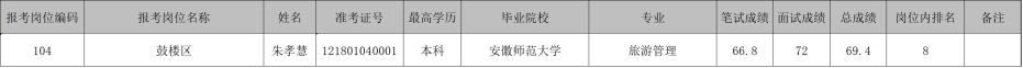 在南京市社会化工会工作者招聘过程中,报考鼓楼区岗位考生朱孝慧,因处于妊娠期,部分体检项目缓检,暂缓录用。现考生朱孝慧孕期结束申请补检,已完成体检且体检结果合格。根据《南京市社会化工会工作者招聘公告》要求,经在线报名、线上初审、防疫信息核查、笔试、资格复审、面试、体检及考察等程序,现将拟录用人员名单进行公示。