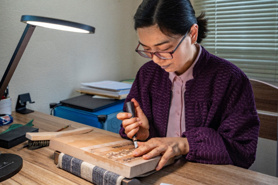 金陵刻经印刷技艺传承人。经过多年的学习与实践,邓清之将自己从小所学的书法、绘画技艺与雕版工艺相结合,在继承传统的同时,不断寻求新的突破。